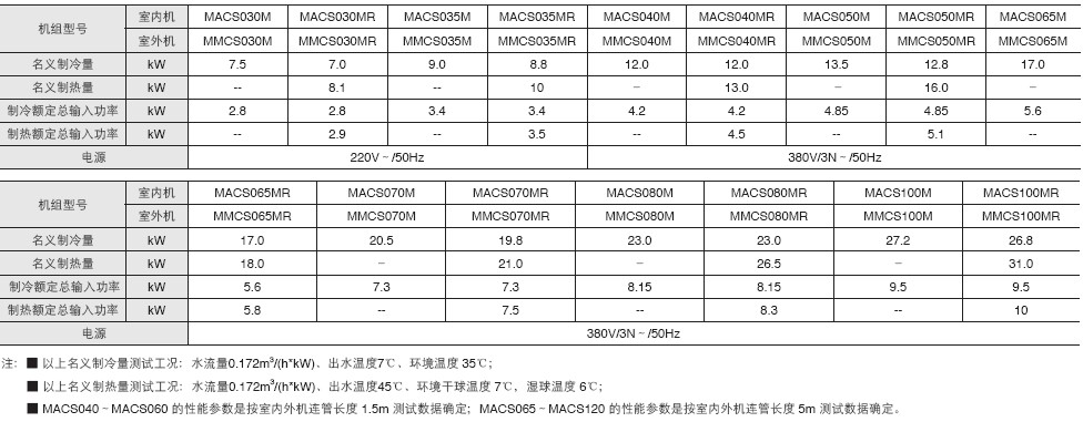 小型風(fēng)冷冷水/熱泵機(jī)組分體系列 MACS-M/S
