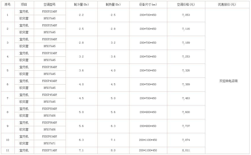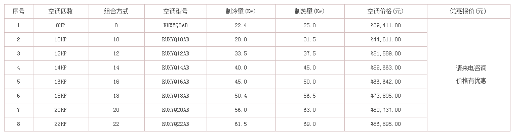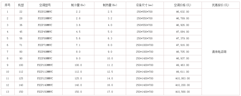 惠馳空調(diào)電器作為大金空調(diào)的經(jīng)銷商,有能力也有義務(wù)為大家解決這個急切的問題。下面列出了不同類型和不同型號的大金中央空調(diào)的價格,有需要的可以聯(lián)系惠馳空調(diào),隨時為您解答。