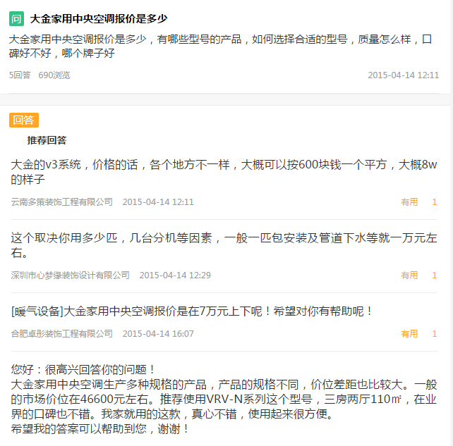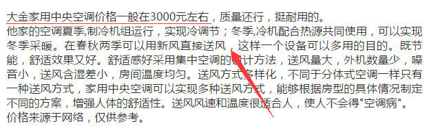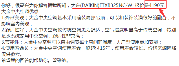 這位網(wǎng)友給出的大金家用中央空調(diào)價(jià)格的范圍在3000左右,沒有標(biāo)注空調(diào)的功率以及型號(hào),無法得知這個(gè)價(jià)格的準(zhǔn)確性。