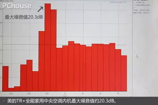 鋪設(shè)隔音裝置的室內(nèi)環(huán)境中,吊裝兩臺(tái)室內(nèi)機(jī),以專業(yè)的噪音儀,分別測(cè)試美的TR+全能家用中央空調(diào)和日系品牌中央空調(diào)運(yùn)行時(shí)所產(chǎn)生的噪音值變化。測(cè)試數(shù)據(jù)顯示,美的TR+全能家用中央空調(diào)內(nèi)機(jī)最大噪音值約20.3分貝(試想一下,一只蚊子飛過(guò)約為35分貝,20分貝幾乎是超靜環(huán)境),某品牌中央空調(diào)內(nèi)機(jī)最大噪音值約22.8分貝,美的TR+運(yùn)行更低噪音。