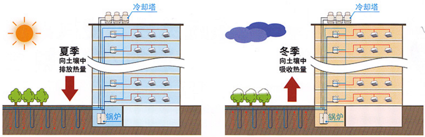 水源熱泵系列大金VRV空調(diào),可靈活的將冷卻塔、鍋爐等傳統(tǒng)冷熱源作為輔助冷/熱源,通過科學(xué)合理的系統(tǒng)方案設(shè)計,有效保障土壤平衡。