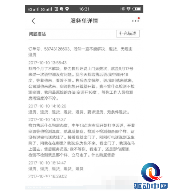 從市場(chǎng)來(lái)看,這已不是格力空調(diào)第一次被推上輿論的風(fēng)口浪尖。在此之前,格力空調(diào)就因質(zhì)量問(wèn)題被媒體曝光。10月23日,據(jù)“驅(qū)動(dòng)中國(guó)”媒體報(bào)道,有消費(fèi)者通過(guò)投訴平臺(tái)表示,6月份購(gòu)買的格力空調(diào)1.5匹竟然不制冷,連續(xù)打了售后電話三個(gè)月之后才登門檢測(cè),但檢測(cè)之后非但沒(méi)有進(jìn)行相應(yīng)的退換貨,售后服務(wù)人員還態(tài)度不好。