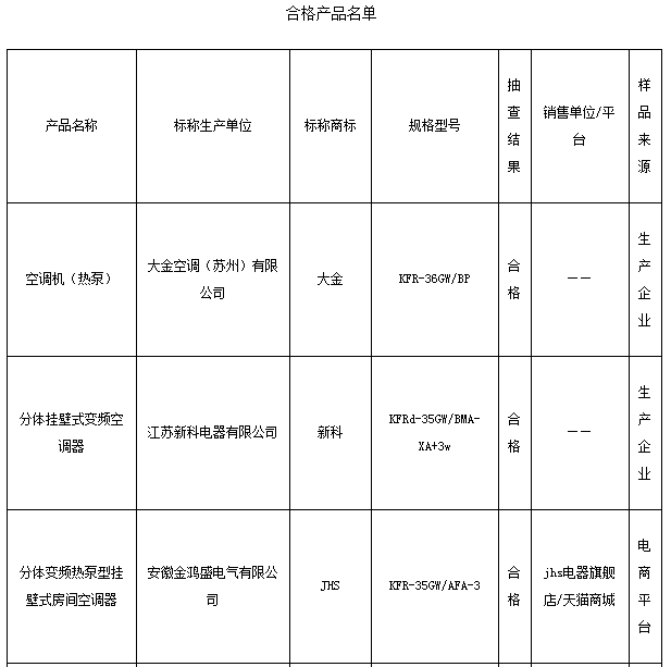中國質(zhì)量新聞網(wǎng)訊 23日,江蘇省質(zhì)監(jiān)局公布家用空調(diào)器產(chǎn)品質(zhì)量抽查結(jié)果。本次共抽查產(chǎn)品39批次,合格36批次,總體狀況較好。其中,變頻空調(diào)器全部合格,3批次不合格產(chǎn)品來自電商平臺,抽查江蘇企業(yè)生產(chǎn)的4批次空調(diào)器均合格。抽查顯示,部分產(chǎn)品在制冷量、制冷消耗功率、熱泵制熱消耗功率和能效值等項目上存在問題。