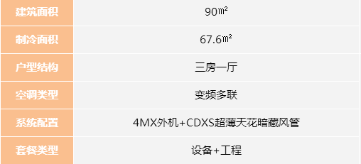 90㎡三房一廳4MX大金中央空調(diào)價格表
